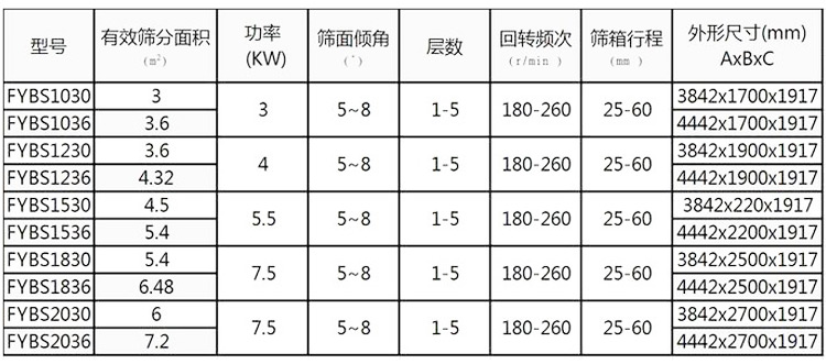 方形搖擺篩技術參數: